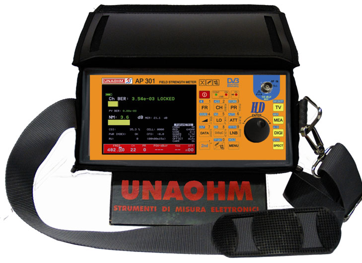 AP-401 FULL HD je profesionální měřicí přijímač se spektrální analýzou dovolující kompletní měření analogového a digitálního signálu DVB-S/S2, DVB-T/T2 a DVB-C, zabudovaný je dekodér MPEG2/MPEG4 a optický vstup. Frekvenční rozsah je od 47 (volitelně od 5) do 2150 MHz. Přístroj je vybaven zobrazením konstelačního diagramu, echo analýzou DVB-T signálů a funkcí Data Logger. Velký a kontrastní TFT displej umožňuje práci i za špatných světelných podmínek. Li-Ion baterie s nízkou hmotností a vysokou kapacitou umožňuje více jak 4 hodinový provoz.