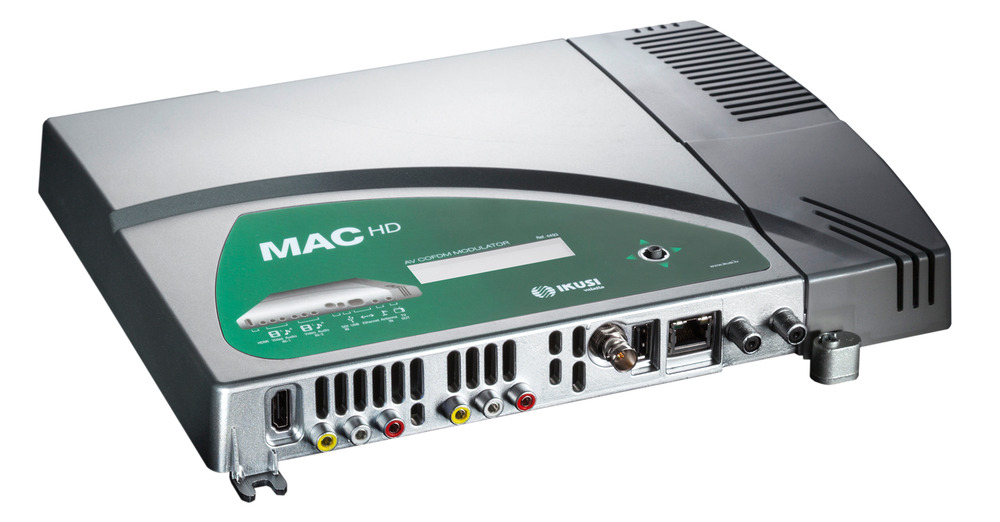 MAC HD je autonomní zařízení sloužící k modulaci dvou AV signálů nebo jednoho HDMI nebo HD-SDI signálu do jednoho výstupního DVB-T kanálu v TV pásmu 51 až 858 MHz. Zařízení provádí v reálném čase digitalizaci AV signálů, komprimaci dle standardu MPEG2 nebo MPEG4 a modulaci COFDM. Modulátor vyniká excelentní kvalitou modulace MER která je typicky 40 dB. Zároveň podporuje zpracování a vložení PSI/SI tabulek a LCN (Logical Channel Suport). Modulátor se nastavuje přímo na čelním panelu nebo přes webové rozhraní. Výstupní signál je plně kompatibilní s normou DVB-T (EN 300 744). Typickou aplikací jsou informační kanály a modulace signálu z DVD, kamer a jiných zdrojů A/V signálu.