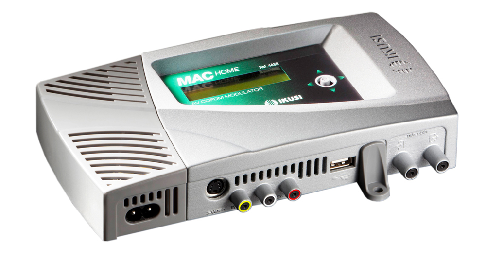 MAC-HOME je autonomní zařízení sloužící k modulaci AV signálu do jednoho výstupního DVB-T kanálu v TV pásmu 474 až 858 MHz. Zařízení provádí v reálném čase digitalizaci AV signálů, komprimaci dle standardu MPEG2 a modulaci COFDM a je vyvinuto spiciálně pro domácí použití. Modulátor vyniká dobrou kvalitou modulace MER která je větší než 35 dB. Zároveň podporuje zpracování a vložení PSI/SI tabulek a LCN (Logical Channel Suport). Modulátor se nastavuje přímo na čelním panelu. Výstupní signál je plně kompatibilní s normou DVB-T (EN 300 744). MAC-HOME je vybaven vnitřním USB přehrávačem, s jehož pomocí lze snadno vytvořit informační kanál pro kabelové TV, obchody, hotely nemocnice a pod.