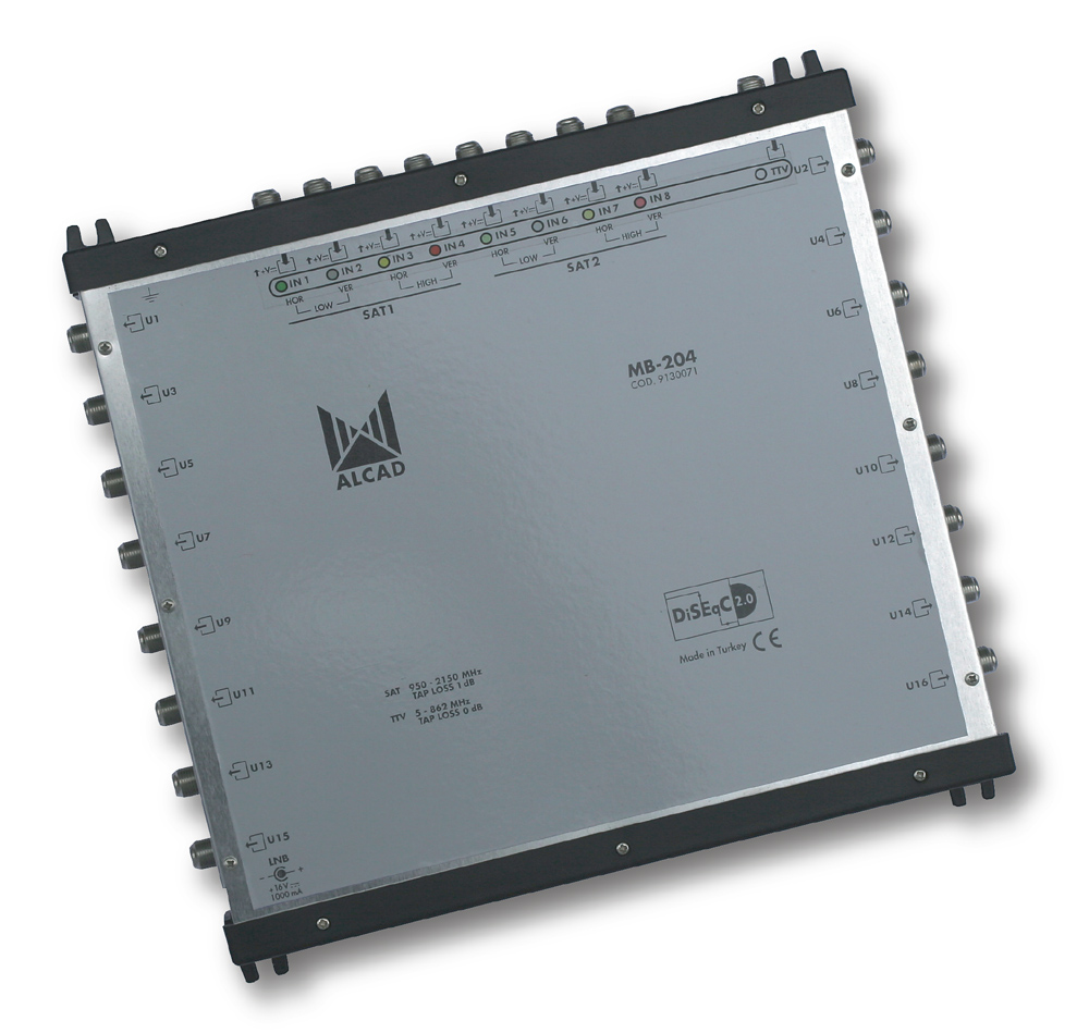 Hvězdicové multipřepínače MB jsou dodávány v konfiguracích s 8, 12, 16, 20 nebo 24 výstupy. Terestrické a FM pásmo jsou v multipřepínačích zpracovávány aktivně, útlum v TV pásmu je od 0 do 2 dB. Vysoká výstupní úroveň (až 95 dBµV v TV pásmu a 100 dBµV v SAT pásmu) umožňuje zapojení vzdálených účastnických zásuvek. Multipřepínač je ovládán řídícími signály podle standardu DiSEqC 2.0. Součástí dodávky je napájecí zdroj FU-403 zajišťující napájení multipřepínače i připojených LNB. Zařízení není nutné při instalaci nijak nastavovat.