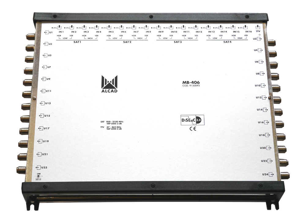 Hvězdicové multipřepínače MB jsou dodávány v konfiguracích s 8, 12, 16, 20 nebo 24 výstupy. Terestrické a FM pásmo jsou v multipřepínačích zpracovávány aktivně, útlum v TV pásmu je od 0 do 2 dB. Vysoká výstupní úroveň (až 95 dBµV v TV pásmu a 100 dBµV v SAT pásmu) umožňuje zapojení vzdálených účastnických zásuvek. Multipřepínač je ovládán řídícími signály podle standardu DiSEqC 2.0. Součástí dodávky je napájecí zdroj FU-403 zajišťující napájení multipřepínače i připojených LNB. Zařízení není nutné při instalaci nijak nastavovat.