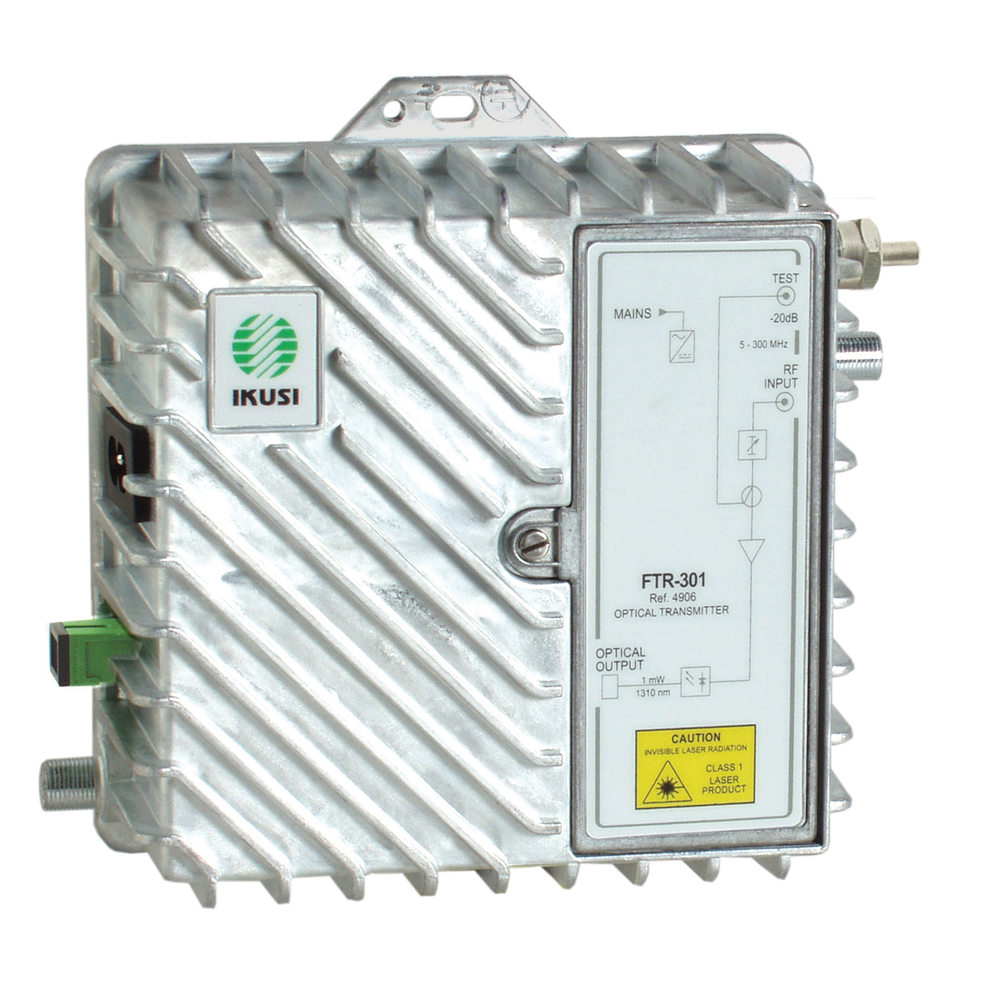 FTR-301 je optický vysílač zpětného směru s optickým výkonem 1 mW pracující s vlnovou délkou 1310 nm. Vysílač umožňuje distribuci RF signálu o kmitočtu 5-300 MHz pomocí single mod optického kabelu. Při použití přijímače FRD je maximální vzdálenost limitována optickou ztrátou 6 dB. Používá v aplikacích se zpětným směrem v HFC sítích pro distribuci dat pro jednotlivé uživatele (internet, VOD, IPTV, VoIP). Vysílač je napájen ze sítě 240V a je umístěn v ZAMAC odlitku. Je určen pouze pro vnitřní montáž.