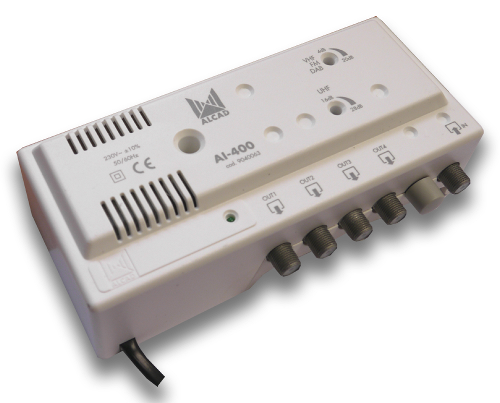 Zesilovač AI-400 je domovní zesilovač pro pozemní analogový a digitální příjem TV/FM signálů. Má jeden širokopásmový vstup a čtyři výstupy. Je vhodný pro použití v rodinných domech i pro více bytových jednotek. Zesilovač je vyroben v ZAMAC odlitku který má vynikající stínící účinky a je kryt plastovým obalem. Zesílení je regulovatelné zvlášť v UHF a VHF pásmu.