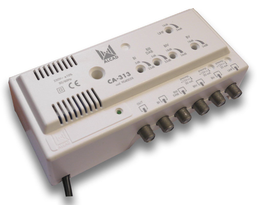 Zesilovač CA-313 je domovní zesilovač pro pozemní analogový a digitální příjem TV/FM signálů. Je vhodný pro použití v rodinných domech i pro více bytových jednotek. Zesilovač je vyroben v ZAMAC odlitku který má vynikající stínící účinky a je kryt plastovým obalem. Vstupy jsou řešeny pásmově s automatickým napájením předzesilovačů u UHF vstupů, v případě zkratu dochází k automatickému elektronickému přerušení napájení.+24V. Zesílení všech vstupů je regulovatelné.