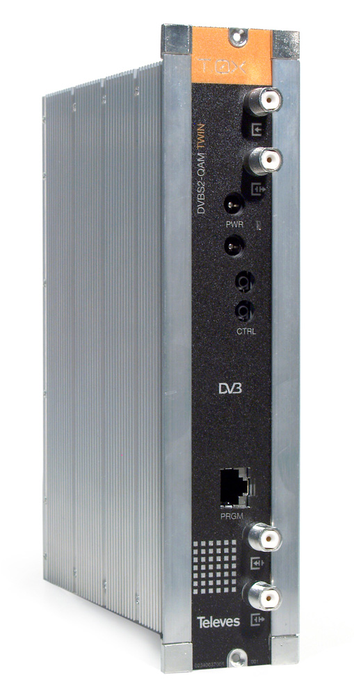 Transmodulátor ref.563501 je součástí modulového systému TELEVES T0X. Slouží k převodu satelitních programů standardů DVB-S nebo DVB-S2 do výstupního DVB-C kanálu v TV pásmu 47 až 862 MHz. Je vybaven CI rozhraním pro zpracování kódovaných programů. Programování se provádí místně pomocí systémového programátoru PCT ref. 7234 nebo vzdáleně (přes LAN) s využitím řídícího modulu ref.5559 a softwaru TSuite. Napájení je realizováno zdrojem +24 (ref. 5629). Montáž na DIN lištu (ref. 5071) na zeď nebo na rám do 19" skříně (ref. 5301). Kompatibilita s ostatními prvky hlavní stanice TELEVES T0X.