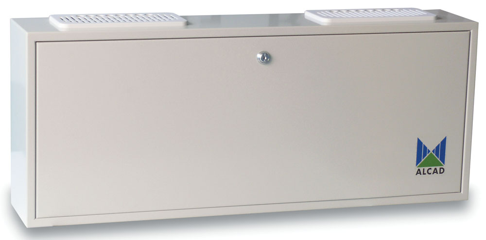 CP-128 je uzamykatelná plechová skříň bez zad pro montážní rám SP-128. Skříň je nastříkaná béžovou barvou.