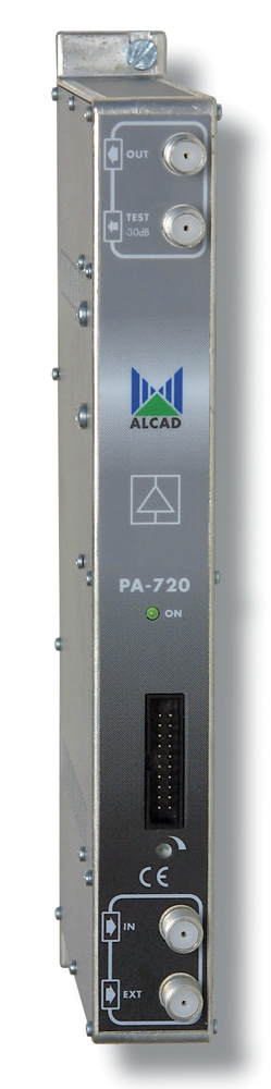 Zesilovač PA-720 je výkonný linkový zesilovač pro zesílení multiplexu pozemních analogových a digitálních TV/FM kanálů ve stanici ALCAD série 912 pro moduly TP/TO/TT/PC/MS. Je vhodný pro distribuci signálu v STA nebo malých kabelových rozvodech. Zesilovač je plně kompatibilní s ostatními komponenty série 912. Zesilovač má zesílení 44 dB s regulací 15 dB.