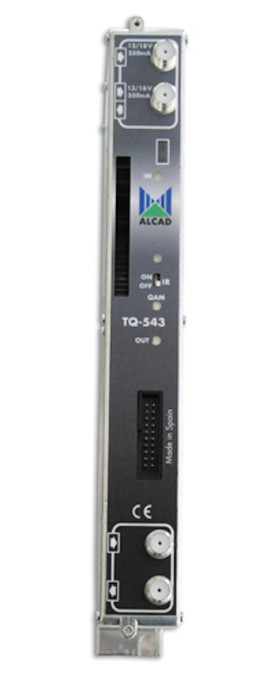 Transmodulátor ALCAD TQ-543 slouží k převodu satelitních programů standardů DVB-S nebo DVB-S2 ze dvou vstupů do jednoho výstupního DVB-C (QAM) kanálu v TV pásmu 47 až 862 MHz. Je vybaven CI slotem a editací transportního toku. Jeho nastavení je možné pomocí programátoru PS-011 a nebo přes USB rozhraní IP-001 programem ASP (Alcad System Programmer) pro PC . TQ-533 jsou mechanicky i zdrojově kompatibilní s ostatními moduly řady 912.